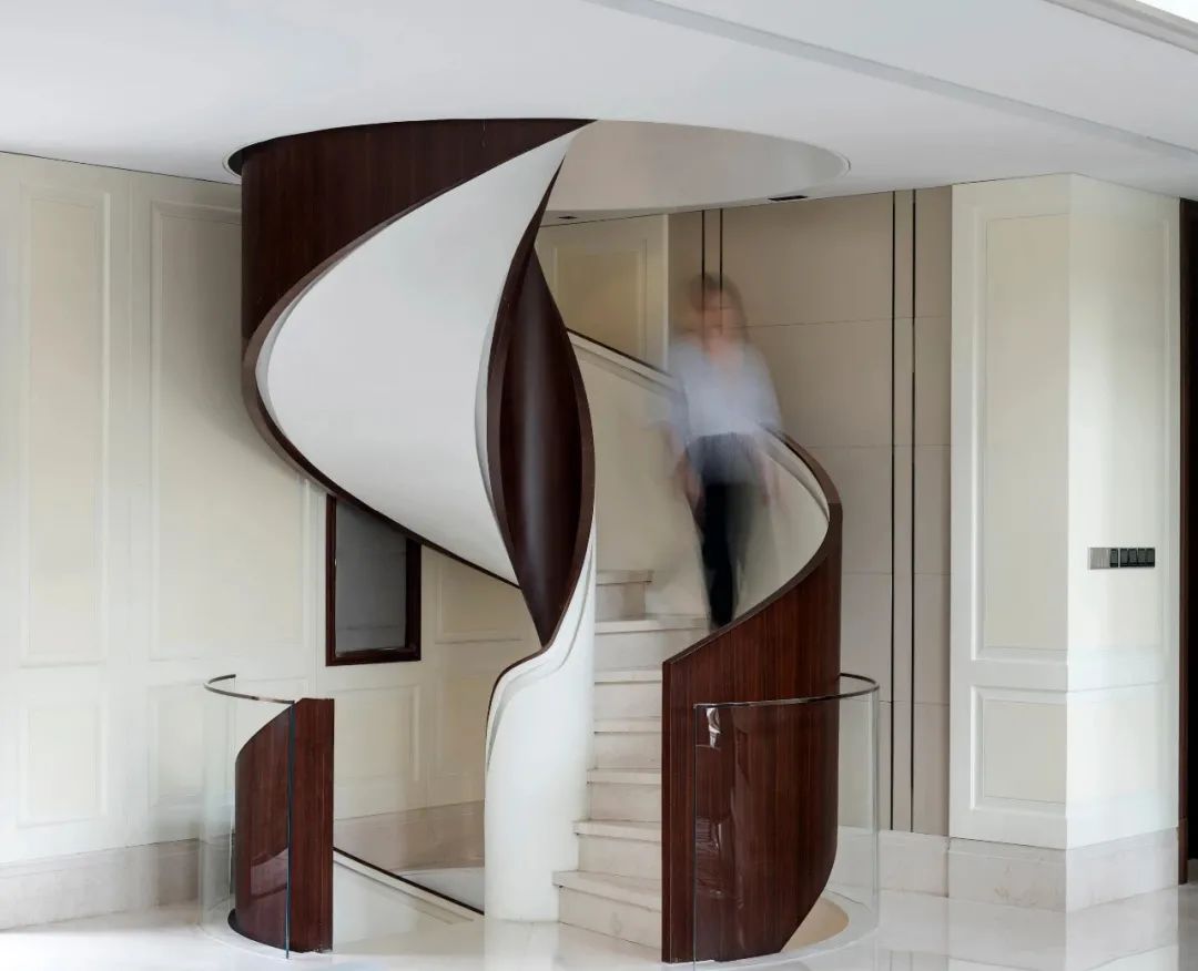 說超樓梯界的顏值擔(dān)當(dāng),不得不提的就是"旋轉(zhuǎn)樓梯"。作為空間連通的樞紐,靈動朝選、宛若舞動著的紐帶 不僅完美的符合其本身的功能性,還成為了空間的一部分甚至是焦點(diǎn),給予空間超乎想象的視覺美感,